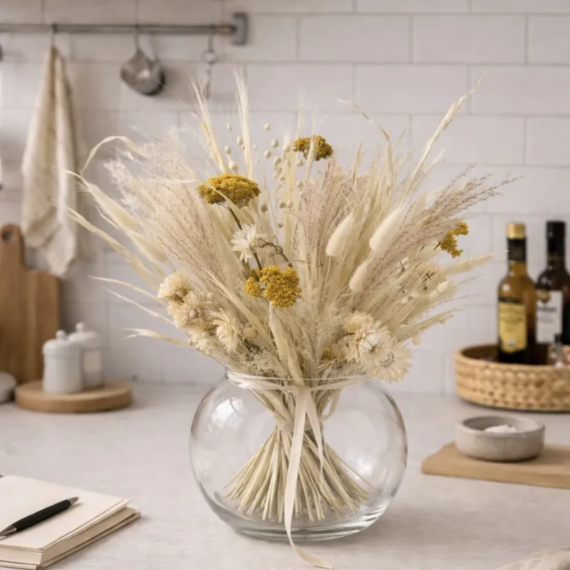 Before assembling, it is enough to cut the stems to the desired length and assemble the composition in a spiral or create a more free, natural shape. The set is ideal for both home decor and as a gift.