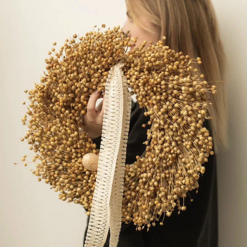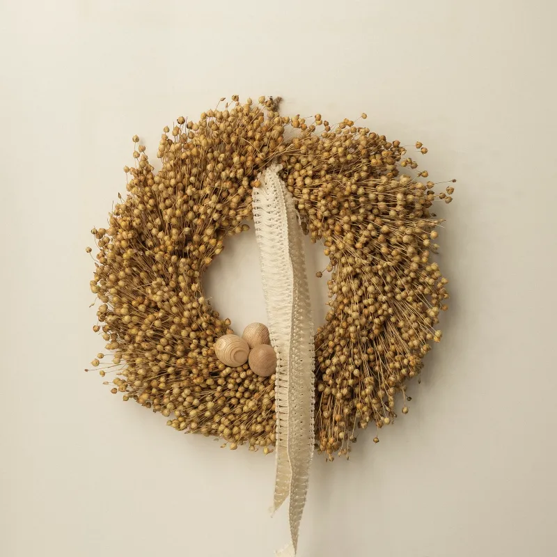 composition: natural linen, wooden balls