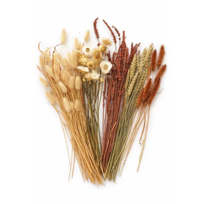 Склад - пшениця зелена , сетарія шоколадна ,лагурус натуральний, геліхризум кремовий,лавандин теракотовий.