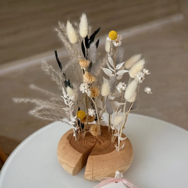 Декор- натуральні сухоцвіти в пастельних та сірих відтінках.