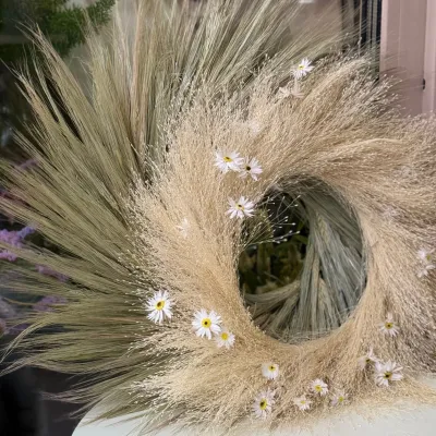 Вінок з білого панікуму та ромашок