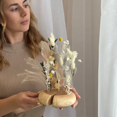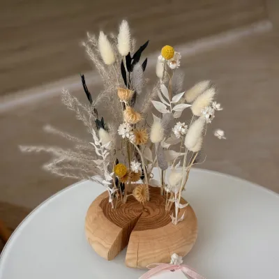 Декор- натуральні сухоцвіти в пастельних та сірих відтінках.